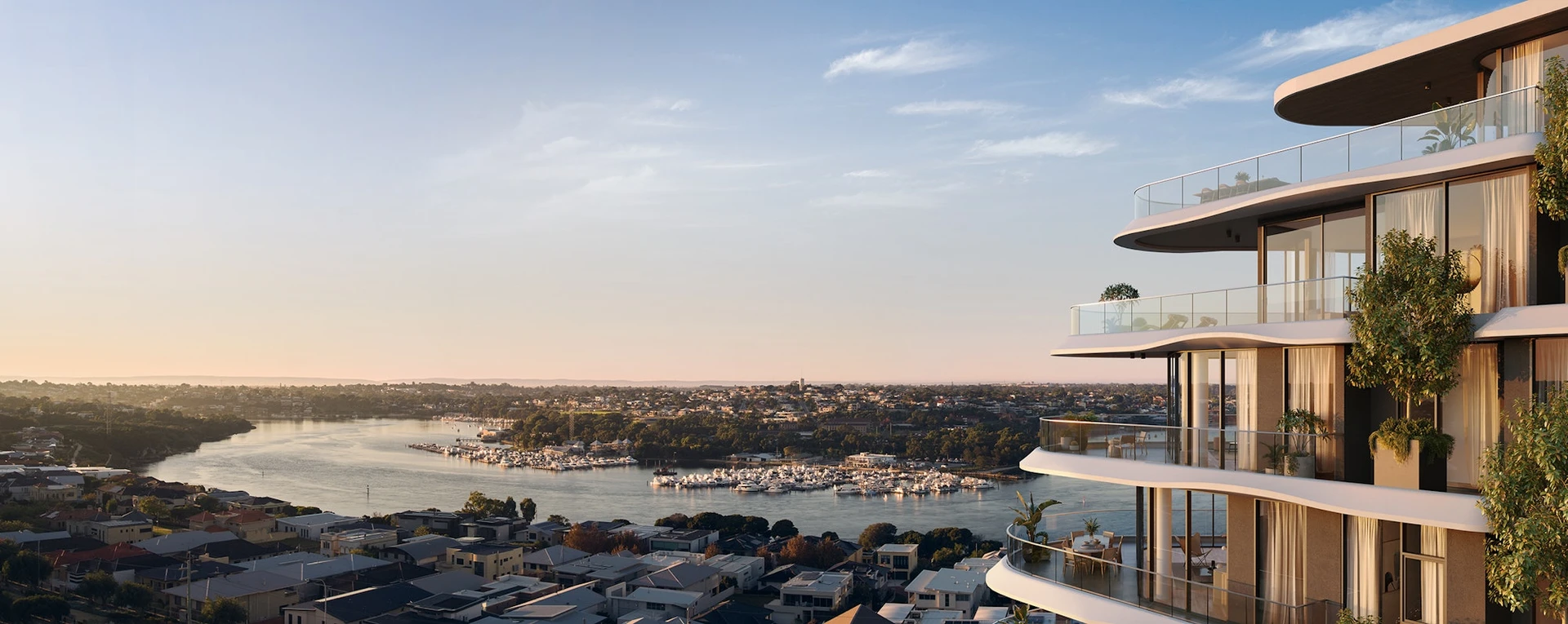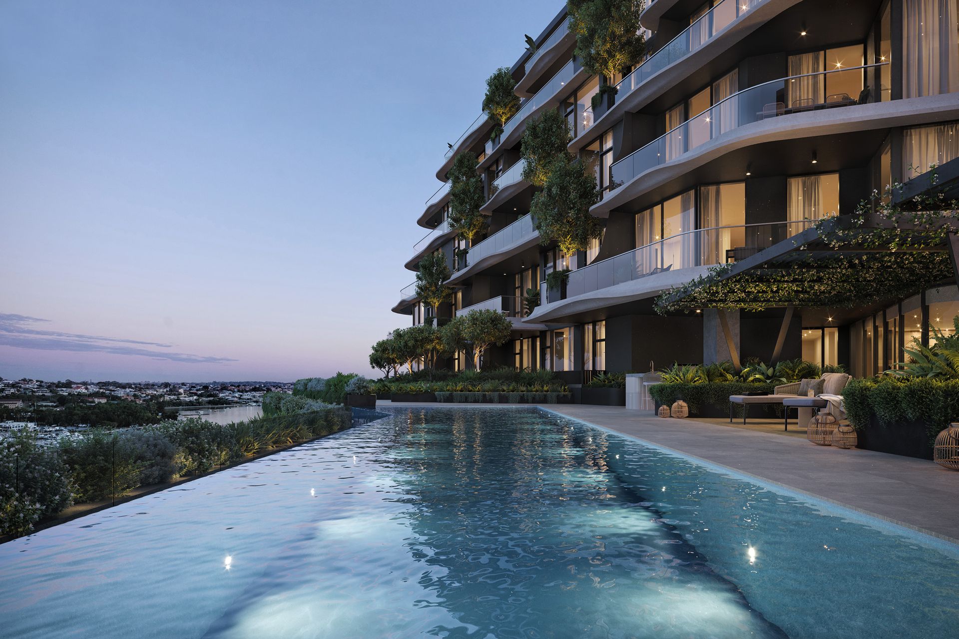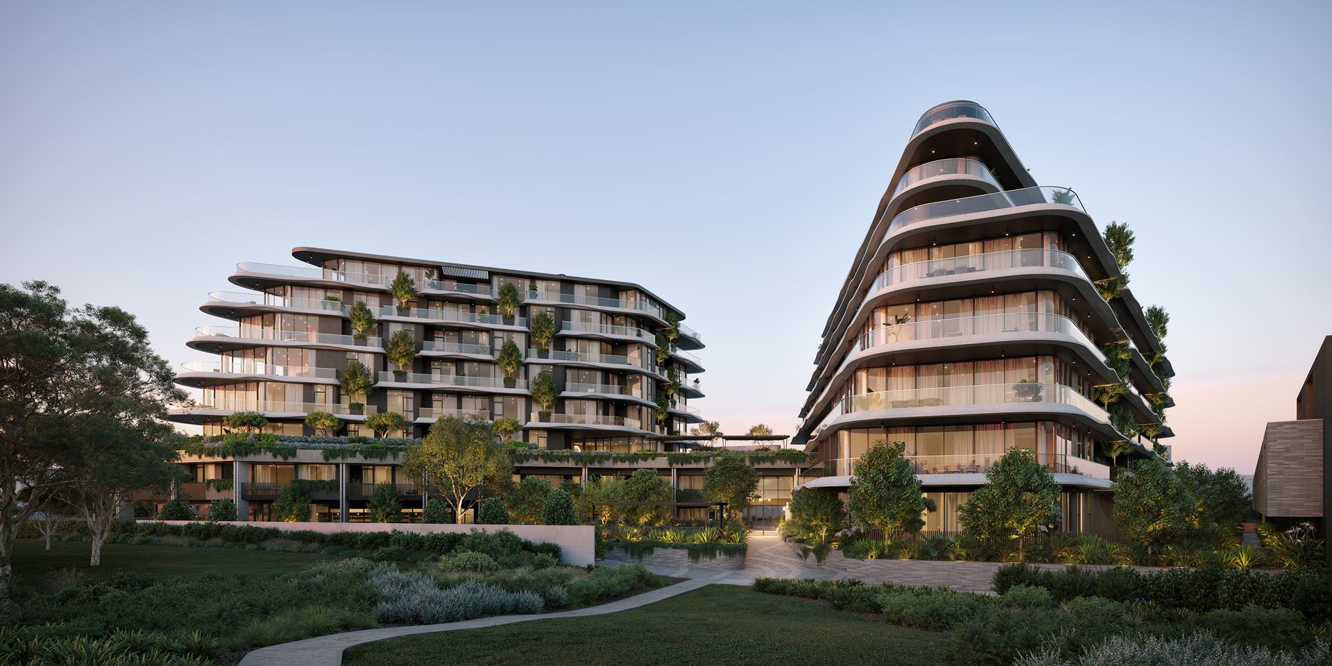 Serai isn’t a building. It’s a collection of architecturally designed apartments and townhouses. In its curves you see a winding river.