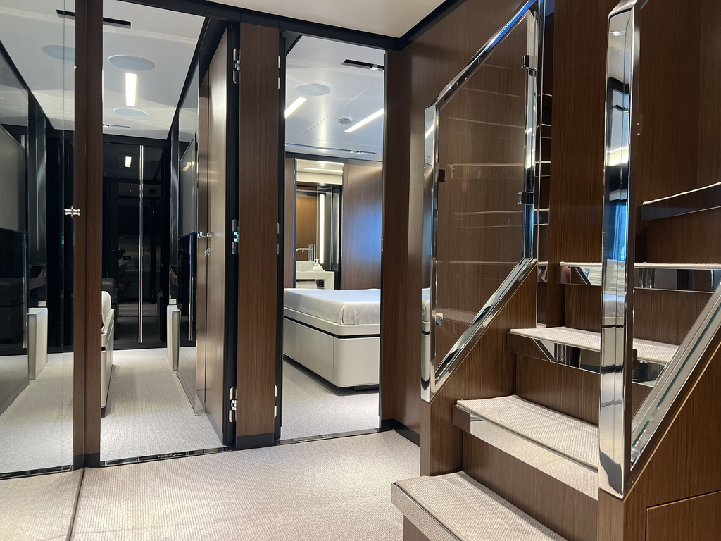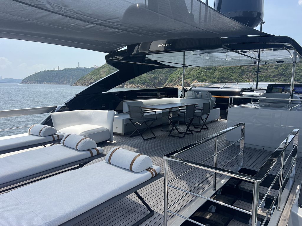 On board Riva 102’ Corsaro Super, there is a clear focus on space optimisation and ever more direct contact with the sea, aiming for a unique cruising experience.